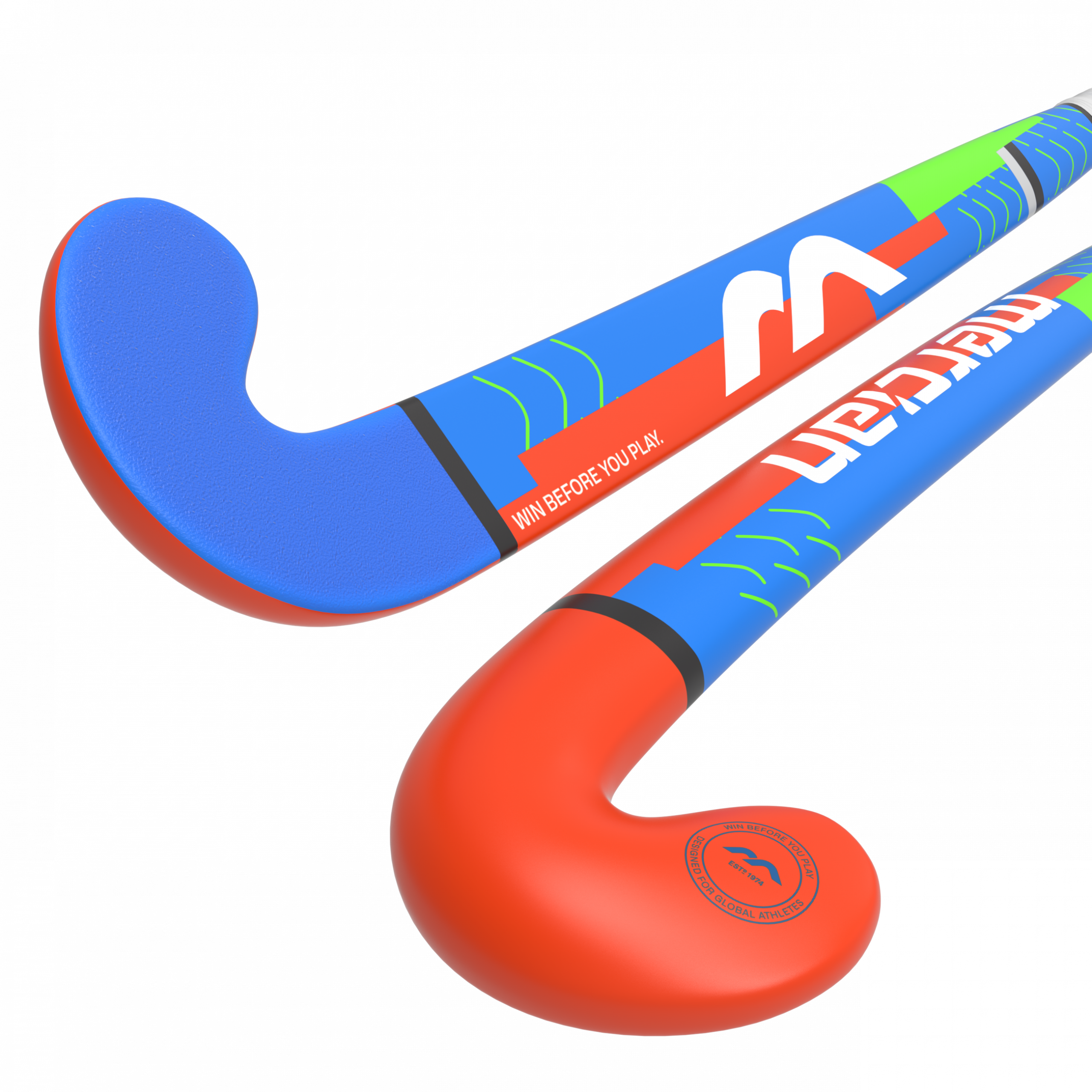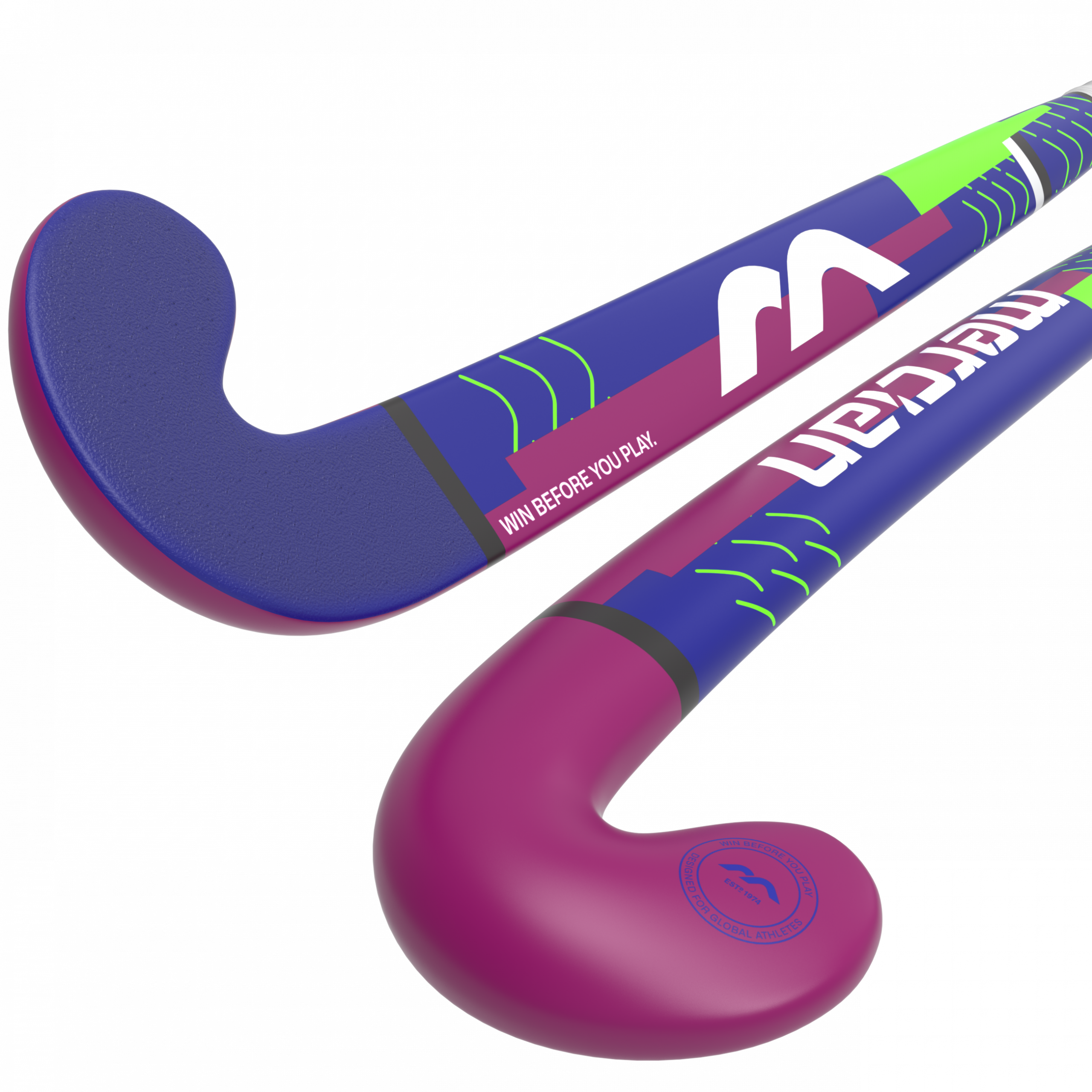 The Mercian Ultimate V2 Bend is new for 2025 – it features the same bend as the legacy Ultimate bend – “is the most aggressive low bow that we have ever made, with the bend of the stick effectively cupping the ball. The maximum bend at this lowest legal point enhances drag flicking and aerial skills with the balance point of the stick adjusted to also favour 3D dribbling skills” – it also now has a thinner toe, this aids getting the toe of the stick under the ball on the reverse side to aid 3D skills. In addition to this it also has a sculpted head, shaping the rear surface of the head from a curve to a flat, angled plane removes some of the bulk and assists getting the head of the stick under the ball, opening the face and aiding overhead passes and generally lifting the ball.